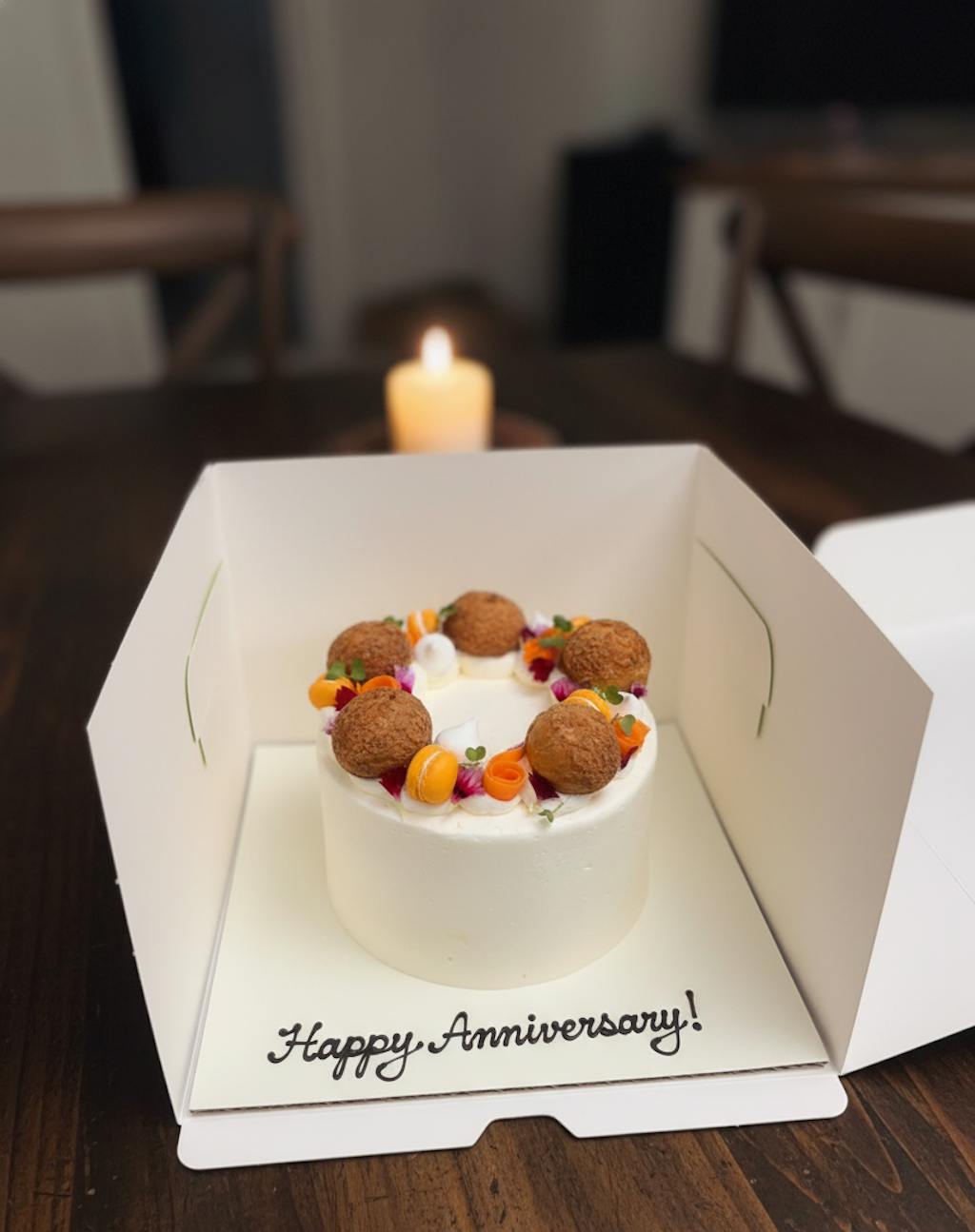 Please refrigerate the cake when you receive it and take it out about 30-45 mins before eating so it comes to an ideal temperature.